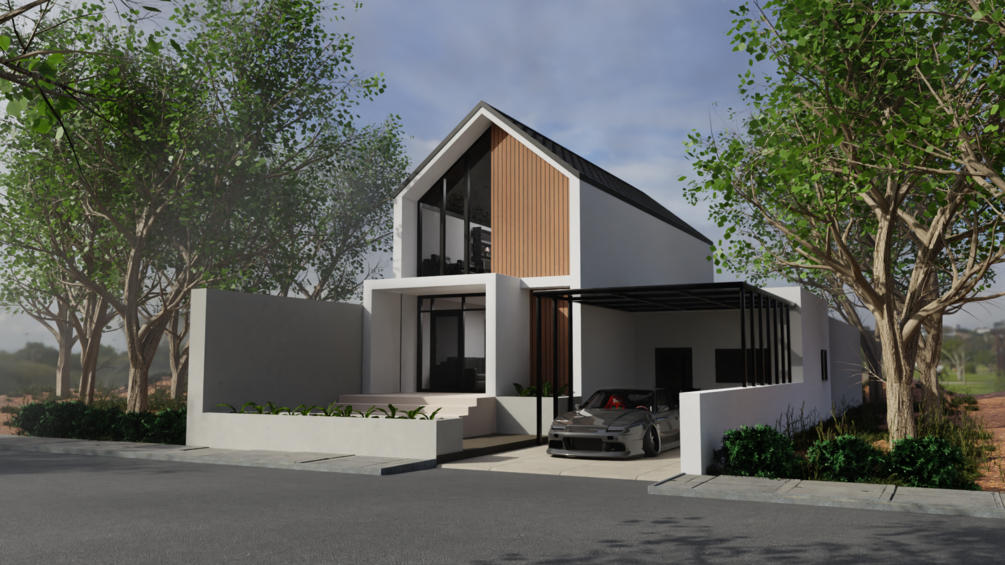 I made this model based on the inspiration of a Scandinavian style house that exists in real life. I only focus on the exterior house model, the interior part I only have a little furniture, as shown.